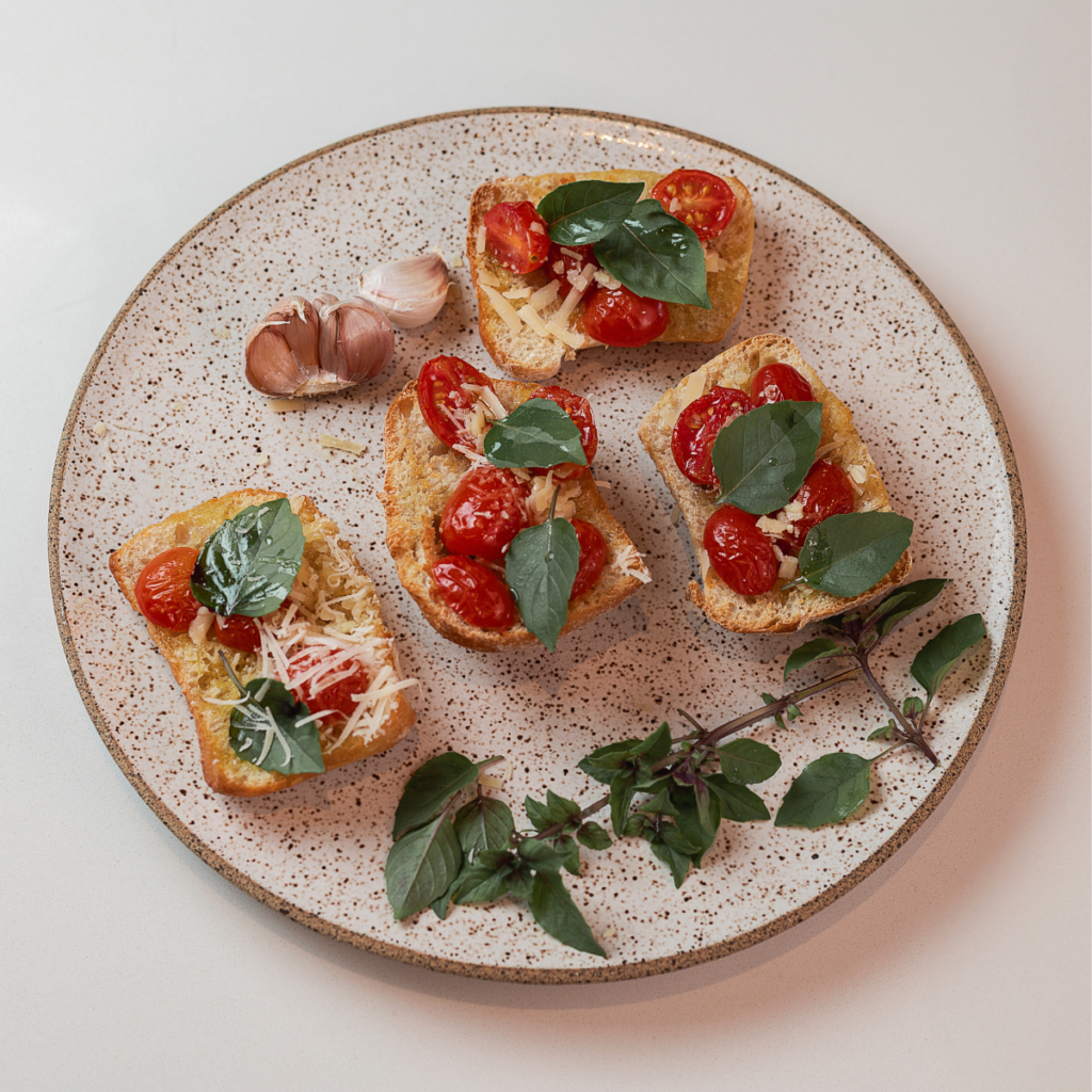 Simples, rústica e repleta de sabor! Nossa Brusqueta Ciabatta Tradicional é feita com fatias crocantes de pão ciabatta, cobertas com uma deliciosa combinação de tomates frescos, manjericão aromático e um toque de azeite de oliva extra virgem. Ideal como entrada ou aperitivo, esta receita clássica italiana é perfeita para compartilhar momentos especiais à mesa.